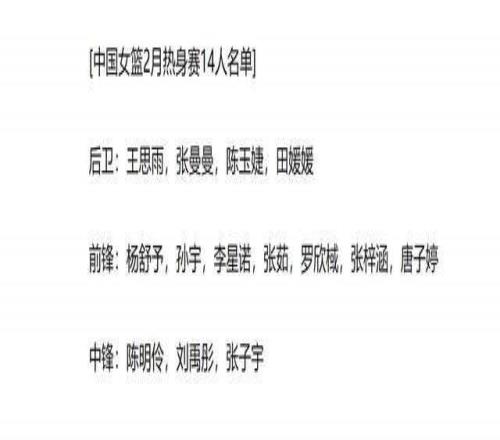 2月3日,WCBA联赛的常规赛结束,女篮也依旧还是兵分两路:一路是俱乐部杯比赛即将进行,分成几个赛区,球员将在春节前进行一系列比赛。另一路,还是中国女篮国家队,她们也在近期集中出战几场热身赛,给3月份的世界杯预选赛做准备。